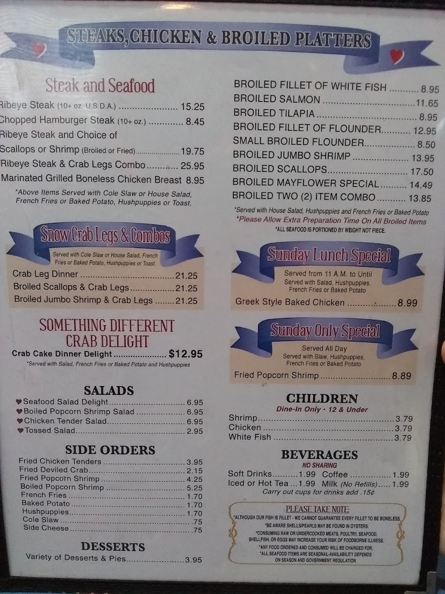 Customer experiences often highlight the restaurant's clean ambiance, attentive service, and reasonable pricing, making it a beloved spot for families and foodies alike. Join the community in savoring quality meals at Mayflower Seafood Restaurant—your palate will thank you!
